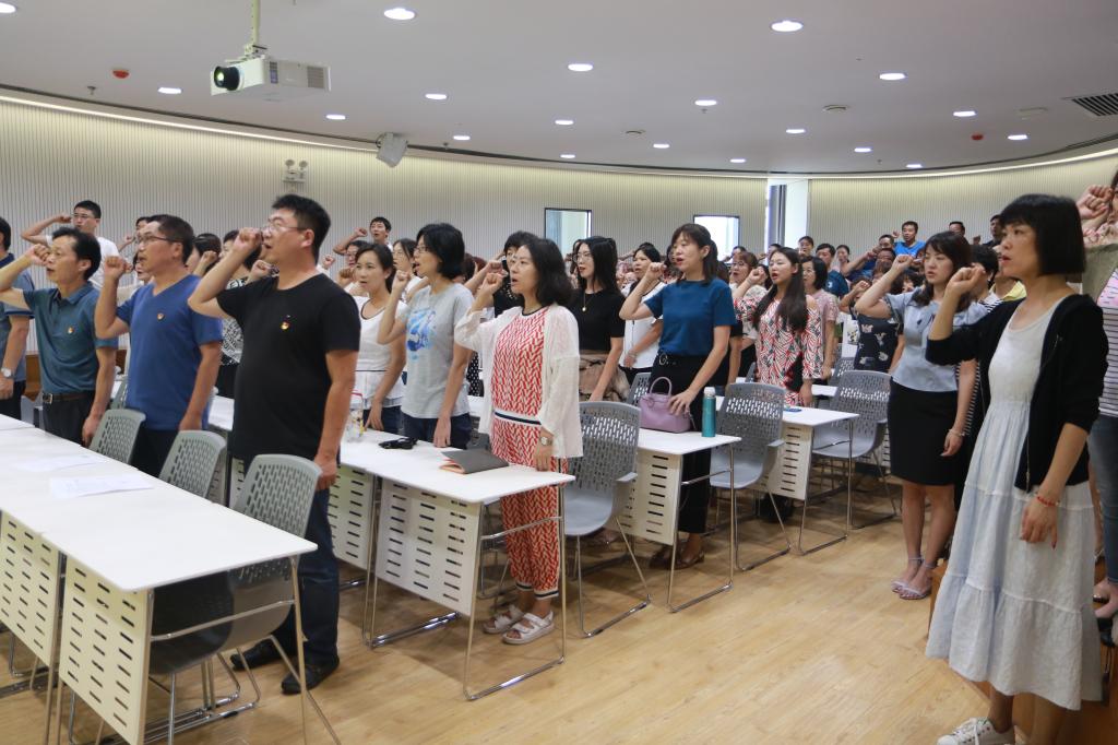 由全国优秀教师赵岚等名师领誓,广大教师右手举拳,面对国旗庄严宣誓。宣誓活动的集中开展,进一步提高了必赢官网教师从业的神圣感和使命感,增强了教师职业幸福感、荣誉感,提高了教师团队凝聚力、战斗力,激发了广大教师投身教育事业的热情和干劲。