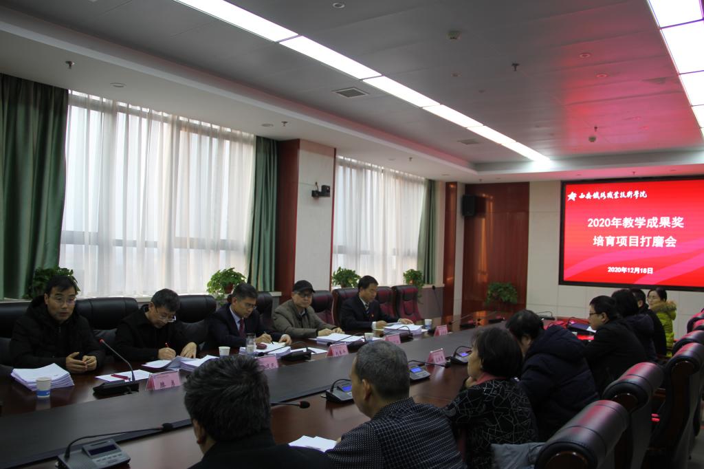 12月18日,学院召开2020年教学成果奖培育项目打磨会。会议邀请陕西省职教学会常务副会长王晓江教授、秘书长杨建民教授对全院24个教学成果奖培育项目进行打磨指导。会议由教务处处长滕勇主持,院长赵春平、副院长安学武出席会议,各项目组负责人及团队成员参会。