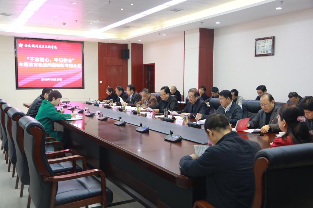 10月25日上午,学院党委召开“不忘初心、牢记使命”主题教育检视问题剖析专题会议。学院领导班子成员、相关部门负责人及教师代表参加会议。市委巡回指导三组副组长岳岚到会指导。