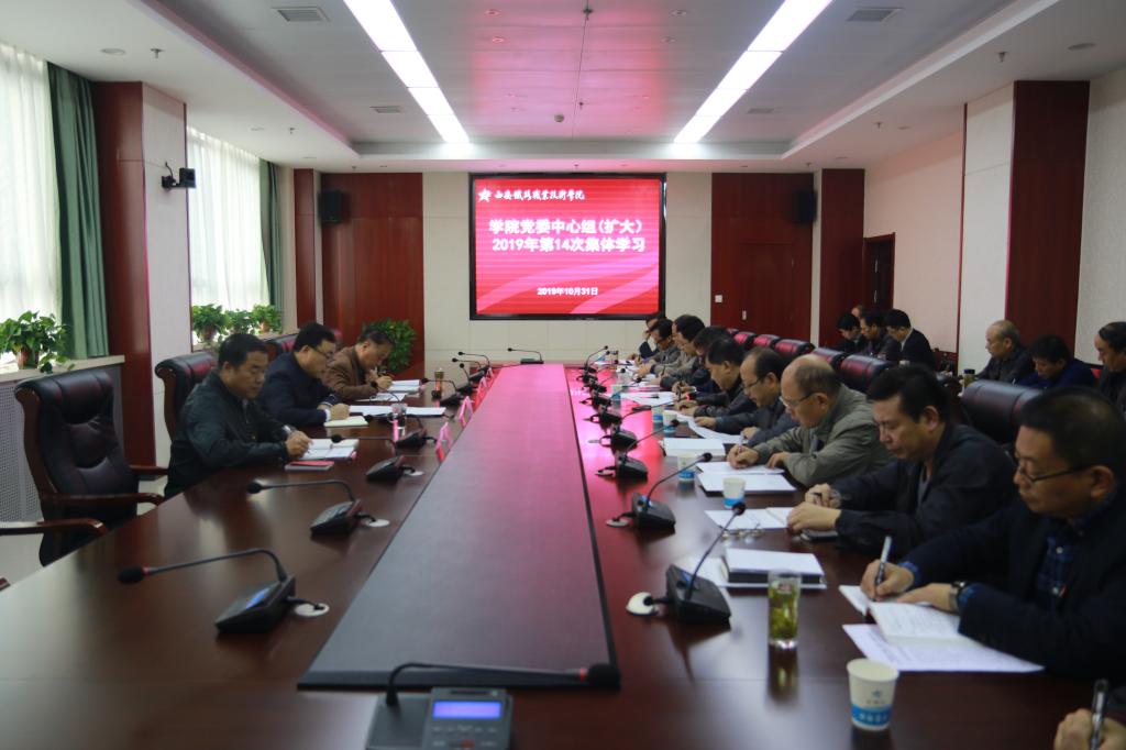 10月31日,学院党委理论学习中心组(扩大)举行第14次集体学习。学院党委领导班子、副处级以上干部参加学习。党委书记施利民主持会议。