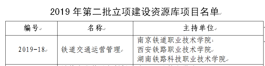 11月8日,由必赢官网与南京铁道职业技术学院、湖南铁路科技职业技术学院联合申报建设的铁道交通运营管理专业教学资源库,获批2019年国家职业教育专业教学资源库立项建设项目。