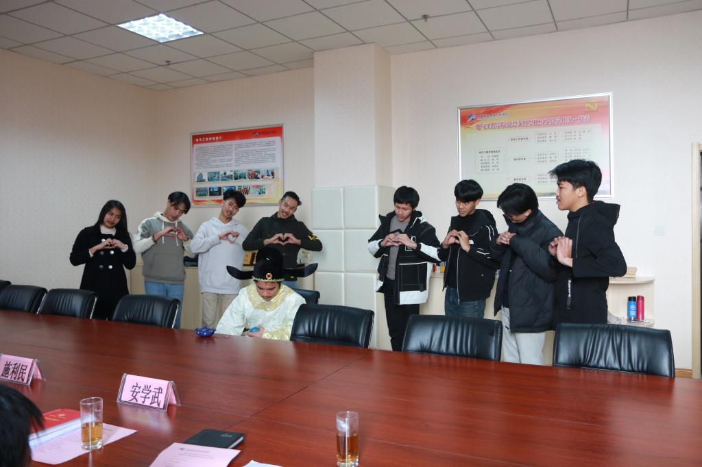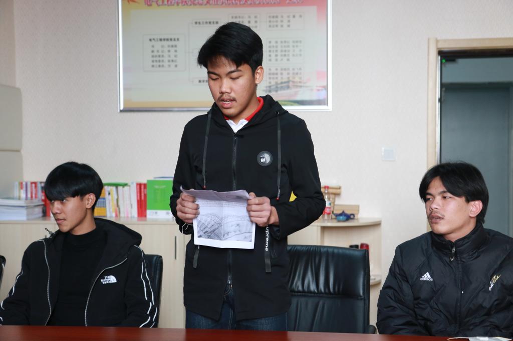 电气工程学院院长李栋总结了2个多月来泰国留学生班的教育教学工作,展示了同学们2个多月来的学习及生活视频。9名泰国留学生用中文表演了小品《购物》、进行了中文造句猜词展示,演唱了中文歌曲《夜空中最亮的星》,他们的精彩表演赢得了大家的阵阵掌声。三名留学生代表用中文汇报了他们在必赢官网的学习生活感受,赵六杰副院长为留同学们颁发了中国文化纪念品剪纸。