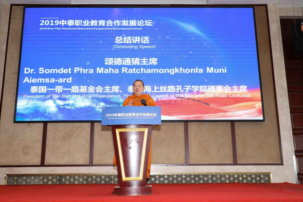 泰国曼谷职业教育中心主任冲普努•波邦松主要介绍了曼谷职业教育中心的情况,总结了所辖13所职业院校在留学生教育方面开展的中泰合作情况。泰国一带一路基金会主席颂德通猜希望中泰双方在职业教育合作方面保持长期、持续性的合作。他祝愿中泰友谊渊源流长,并期盼中泰发展多领域的合作,不断加强两国间的人文交流,促进文化理解与认同。