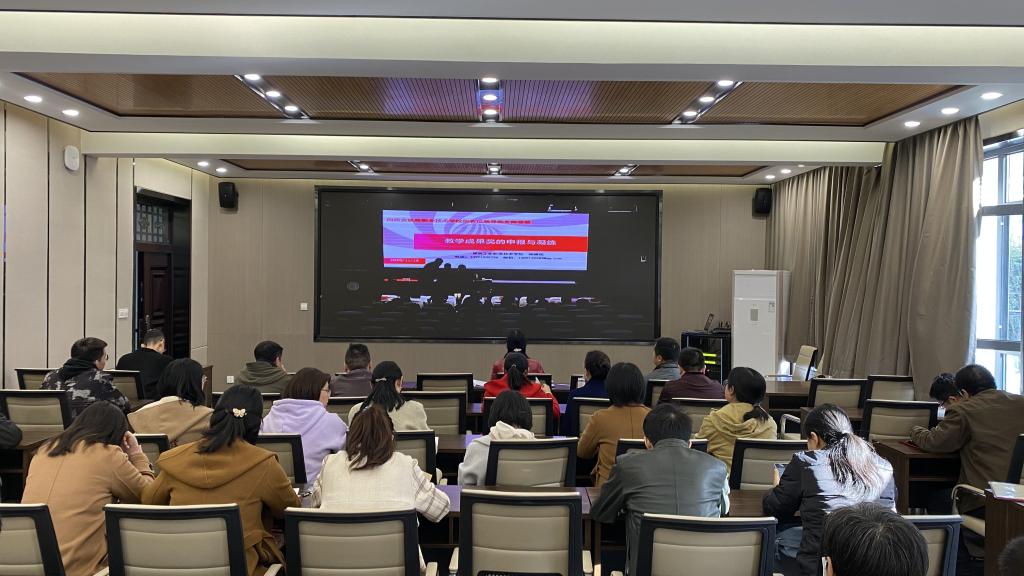 为做好教学成果奖培育工作,提升申报质量,11月18日,学院邀请了2018年度高职国家级教学成果一等奖获得者、陕西省职业技术教育学会秘书长杨建民教授作“教学成果奖申报与凝练”专题讲座。主会场设在港务校区办公楼一楼学术报告厅,自强校区、临潼校区同步收看直播。各院部院长(主任)、党总支书记、副院长、教学管理干部、专任教师及教学部门管理干部等300余人参加讲座。讲座由学院副院长安学武主持。