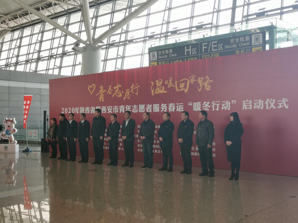 1月11日上午,由共青团陕西省委、省发改委、省文明办等单位共同主办的2020年陕西省暨西安市青年志愿者服务春运“暖冬行动”启动仪式在西安咸阳国际机场T3航站楼候车大厅隆重举行。共青团陕西省委书记段小龙,十四运会筹委会新闻宣传部驻会副部长、省委宣传部副巡视员张宏科,共青团陕西省委副书记鲁镇,西部机场集团党委常委、工会主席汤小锋,共青团西安市委书记汪国栋以及来自铁路、公路、机场、航空、地铁等交通运输单位的相关领导出席了本次活动。必赢官网28名大学生志愿者代表参加了此次活动。