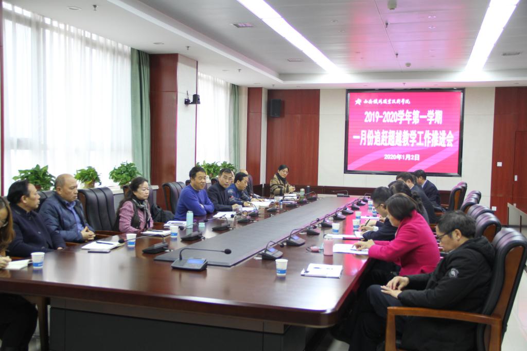1月2日,学院副院长安学武主持召开1月份追赶超越教学工作推进会。教务处、质量管理办公室、教科研处、教师发展中心、现教中心及图书馆等职能处室、各二级院部负责人参会。