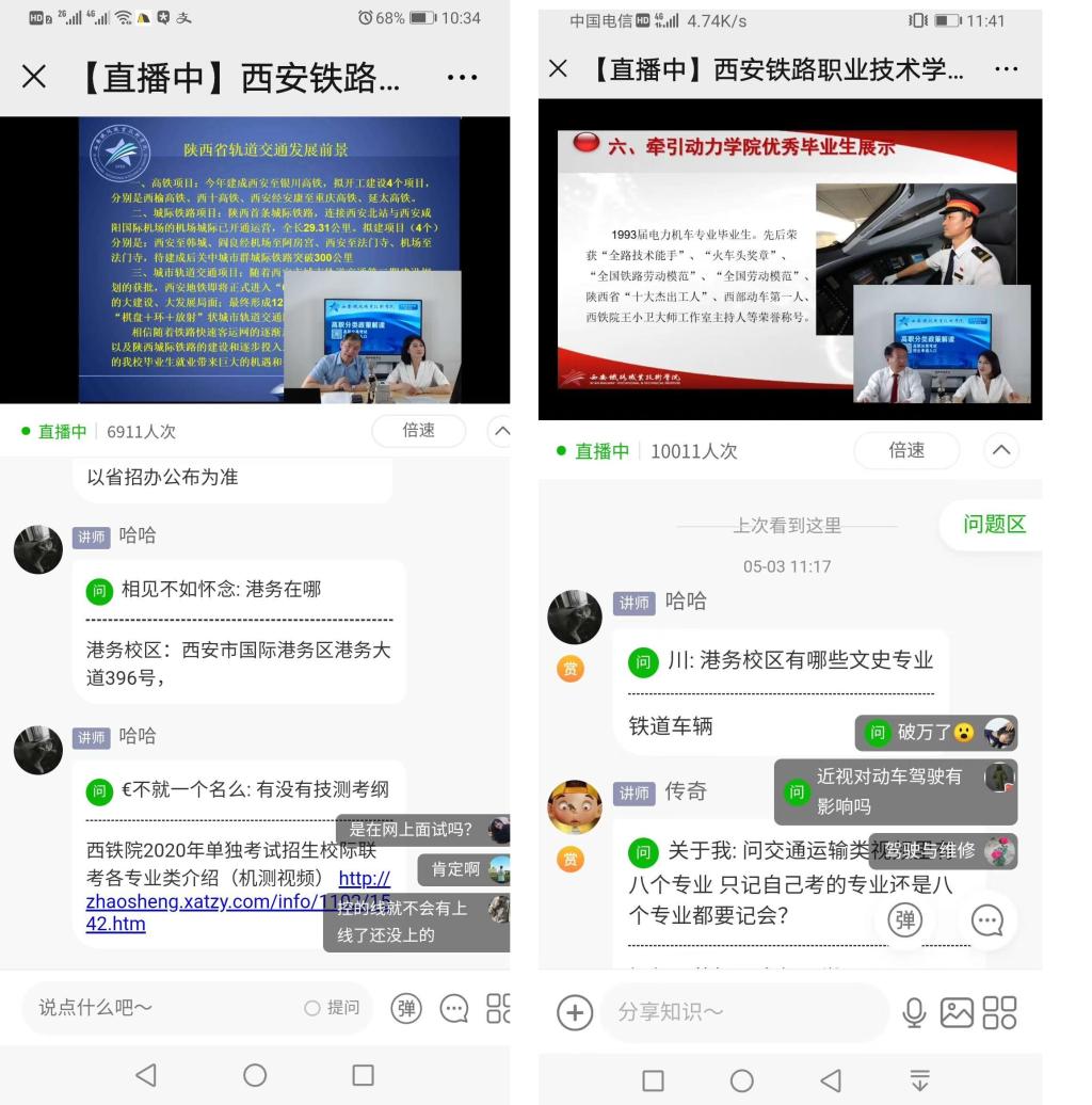 5月3日,我院首次开通网络视频直播,面向省内,特别是西安地区考生开展招生宣传,解答考生关心的问题。历时3个小时的直播活动,万余位考生和家长进入直播间参与咨询。