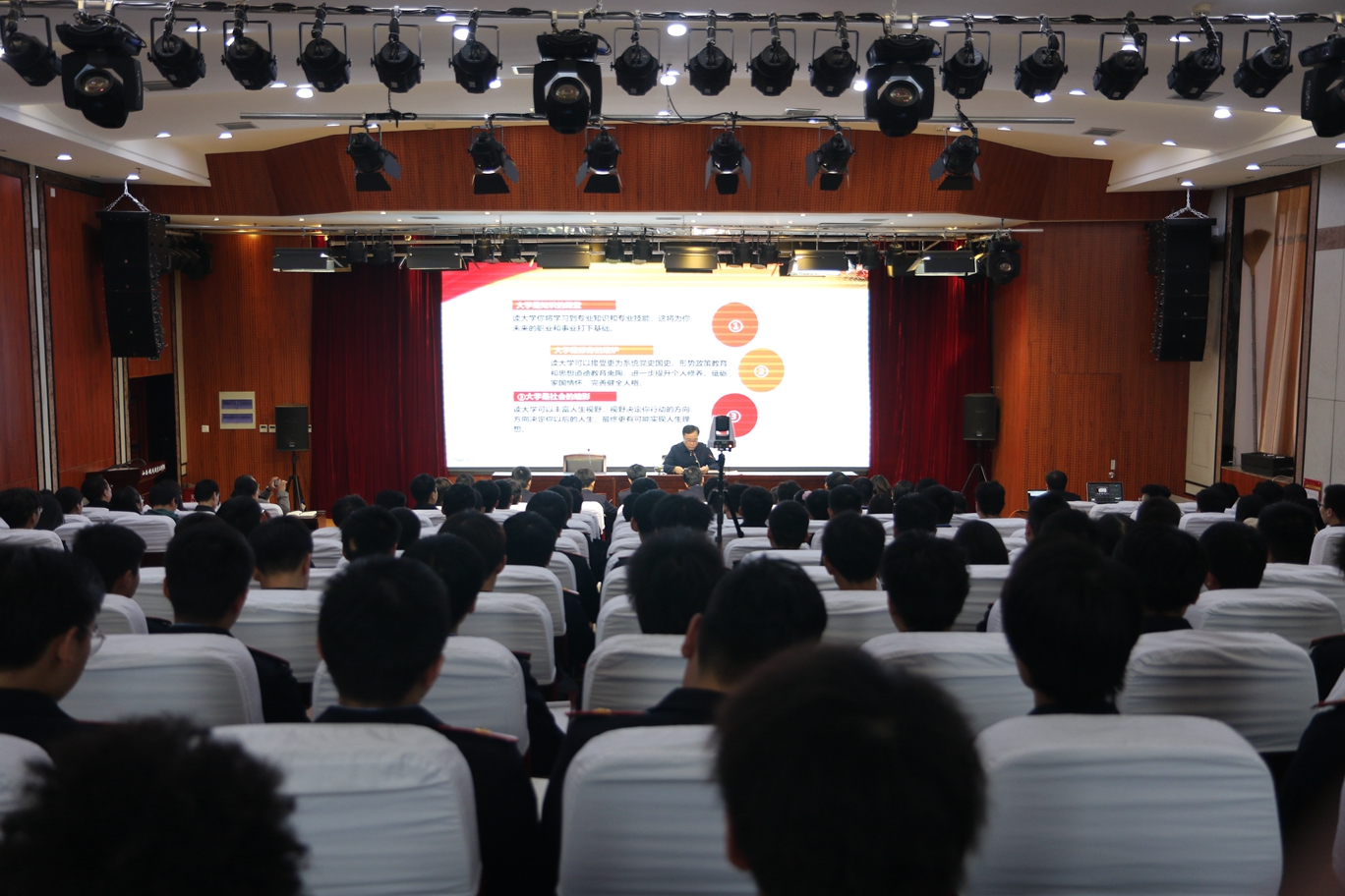 按照陕西省委教育工委关于高校领导干部听讲思政课有关要求,11月27日下午,学院党委书记施利民为全校大一4100余名学生上了一堂题为《不负韶华,锤炼品质,谱写高职生活新华章》的专题思政课。