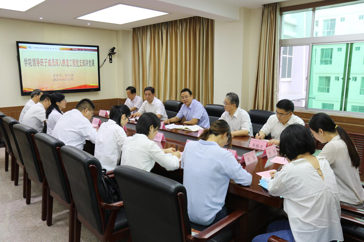 为深入学习贯彻落实习近平总书记来陕考察重要讲话重要指示精神,按照学院开展纪念建党九十九周年“七一”系列活动安排,6月22日上午,学院党委委员、副院长赵六杰深入临潼校区党总支铁道工程党支部,为支部党员讲授了一堂生动而具有教育意义的党课。校区党总支委员列席党课。党课由铁道工程党支部书记冷鑫主持。