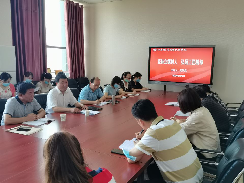 根据学院党委的统一安排,6月24日,学院副院长安学武为电气工程学院全体党员上了一堂《坚持立德树人、弘扬工匠精神》专题党课。安院长从教师要落实好立德树人的根本任务、教师要重视言传身教、教师要重视学生工匠精神的培养及传承工匠精神要用好身边典型四个方面,结合学院实际谈了自己的体会和认识。