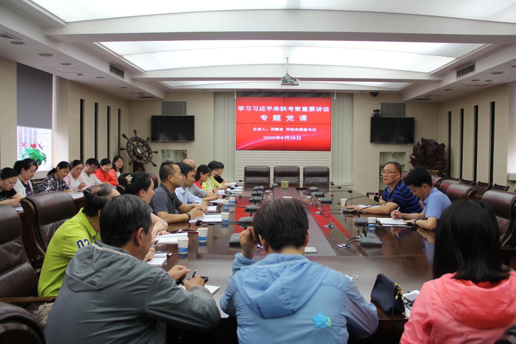 为了深入学习贯彻习近平总书记来陕考察重要讲话精神,6月28日下午,学院党委副书记邓耀斌深入交通运输学院,在自强校区为全体党员做了题为“勇立潮头、只争朝夕,谱写交运追赶超越发展新篇章”的专题党课。