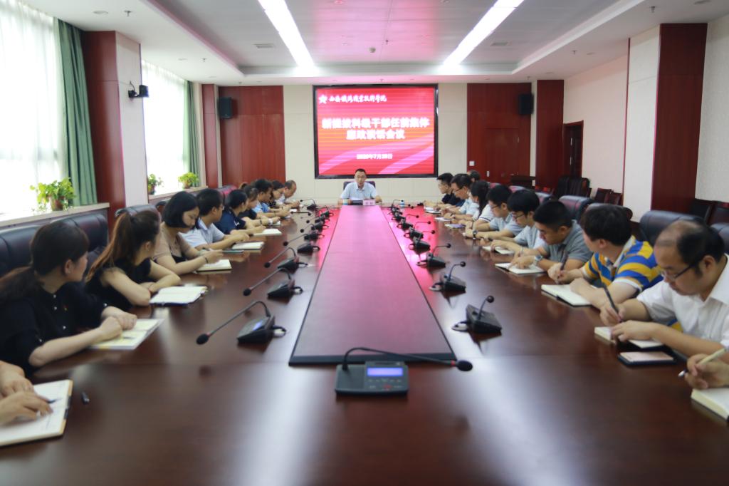 党委副书记兼纪委书记、监察专员邓轩对新提拔的科级干部进行了集体谈话,从善于学习、勇于开拓、严于律己三个方面,教育党员、干部始终坚守纪法底线,牢记宗旨、恪尽职守、清正廉洁、积极进取,以坚强的党性、良好的品质、一流的业绩,凝心聚力地持续推动学院内涵发展建设。