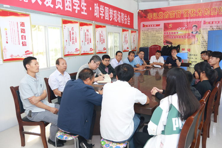 在村委会多功能室,学院领导与村中新入学大学生及贫困中小学生亲切座谈。赵春平希望新入学大学生在人生新阶段要继续保持求知热情,志存高远、坚定信心、努力拼搏、学有所成,用优异的学习成绩斩断贫困代际传播,改变家庭生活状况。希望村中贫困学生要排除一切困难,坚持完成学业,为更美好的未来努力奋斗。