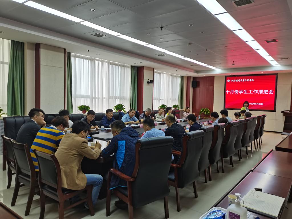 会上,各二级学院汇报了九月份学生疫情防控、文化活动、安全稳定等工作,并结合9月22日学院党委扩大会议精神,做了学院十月份学生工作有关安排。