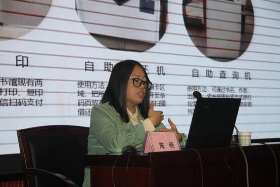图书馆陈晓老师为新生介绍了图书馆的作用及学院图书馆的概况,展示了图书馆网站建设,示范了如何进行资源搜索,帮助新生尽快地了解图书馆的资源服务,提高新生获取信息的能力和文献检索技能。