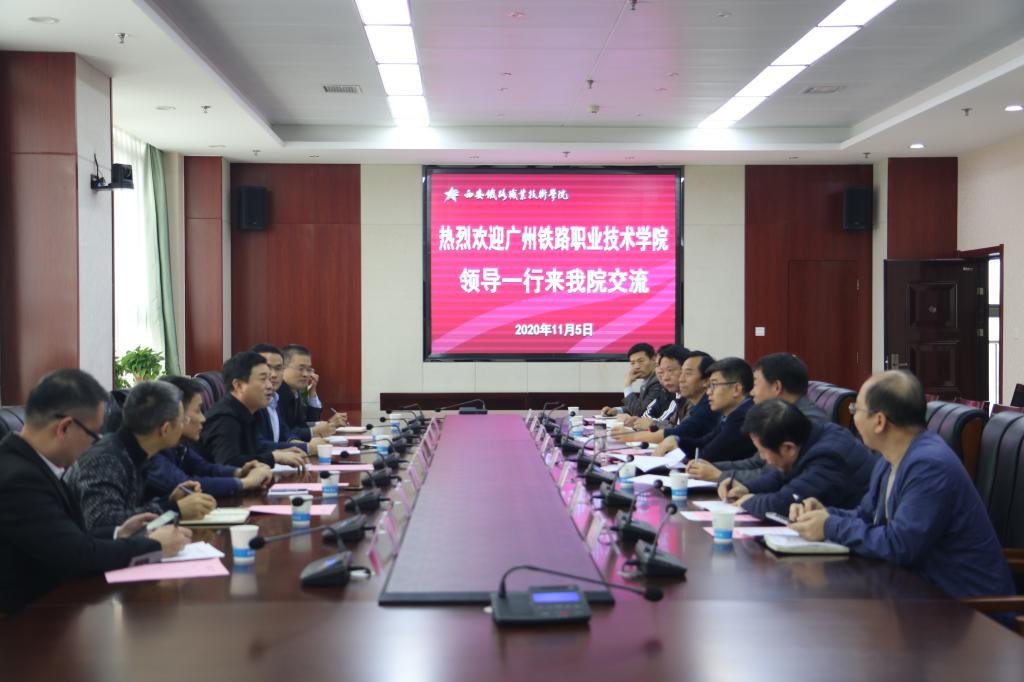 11月5日下午,广州铁路职业技术学院马仁听校长一行7人来到必赢官网交流工作,学院院长赵春平、副院长安学武以及党政办、教务处、交通运输学院、牵引动力学院、机电工程学院、电气工程学院等部门负责人参加了座谈交流。