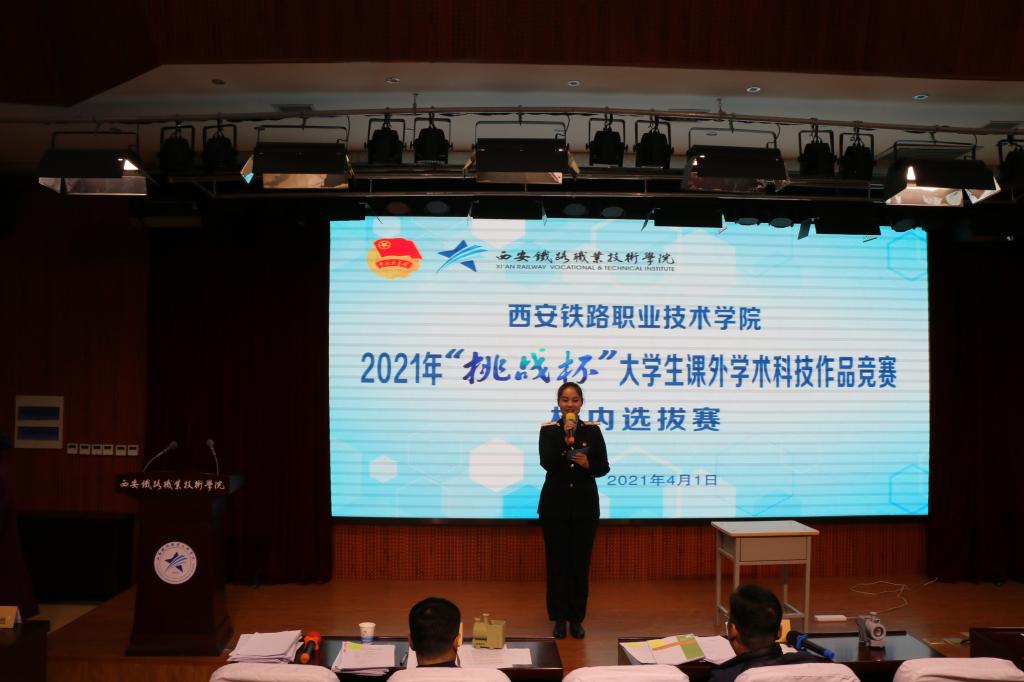 4月1日下午,学院2021年“挑战杯”大学生课外学术科技作品竞赛校内选拔赛在港务校区收官。大赛邀请到陕西工业职业技术学院西部创新创业研究院院长胡平教授、西安航空职业技术学院创新创业学院常务副院长李栋与陕西国防职业技术学院教务处副处长易楠等三位校外专家作为评委进行校赛作品的评审。