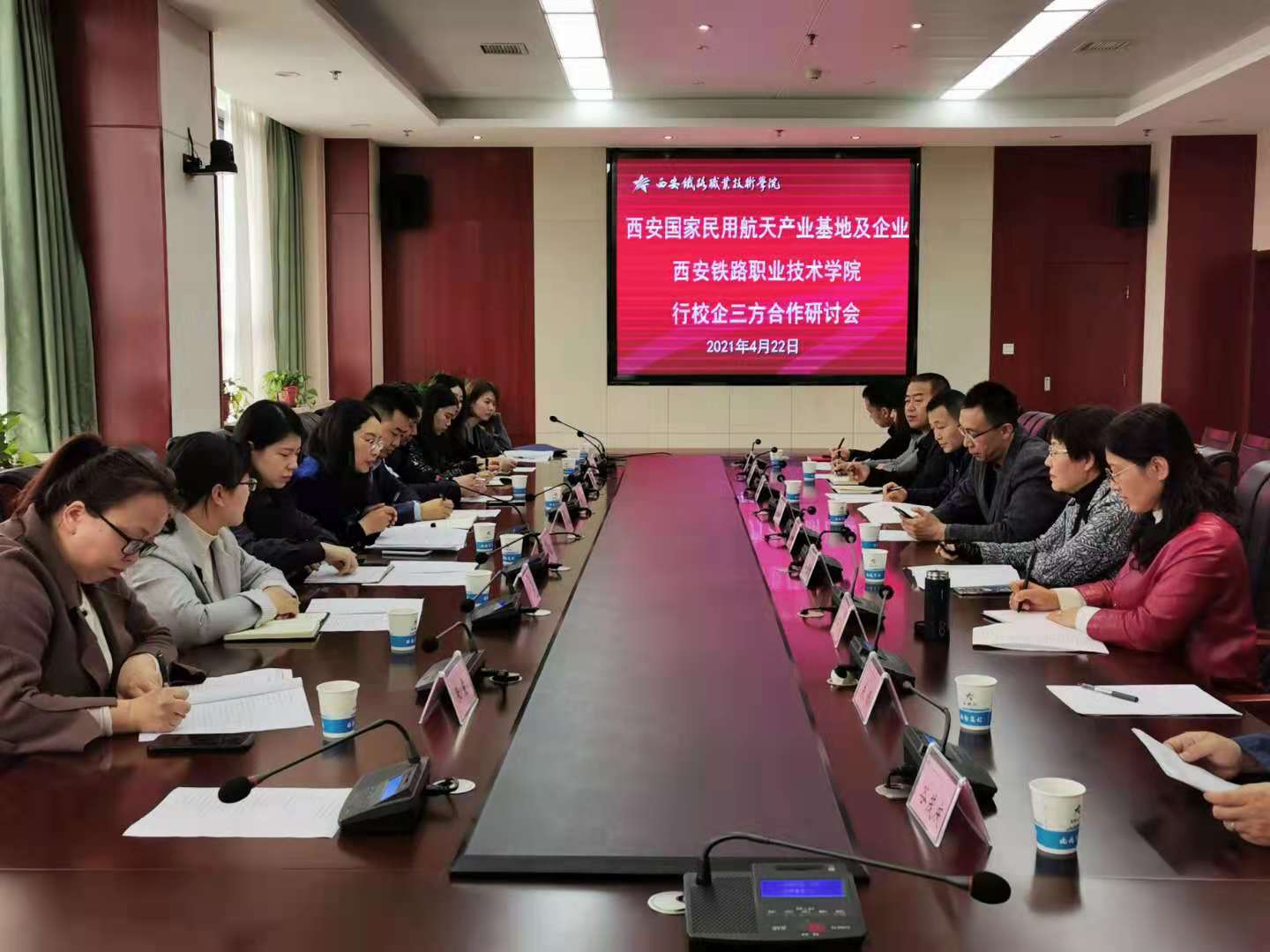 4月22日航天基地管委会人社局副局长孙丛笑,业务负责人韩建华,人才组组长李艺,招聘组组长黄冬雪及中煤航测遥感集团有限公司招聘主管冯亮,西安神西电气有限责任公司办公室主任刘瑞琪、人事主管张雯,西安铁路信号有限公司培训主管田佩,西安华信铁路技术有限公司人力资源专员巩娟,西安恒达微波技术开发有限公司行政人事部主任朱琳等一行受邀来访必赢官网,就深化校企合作项目,人才需求等工作展开交流与研讨。学院党委副书记、纪委书记邓轩,就业指导中心(校企合作处)处长张治平、电气工程学院党总支书记和晋秦、及各学院校企合作、就业工作相关人员参加研讨。会议由邓轩主持。