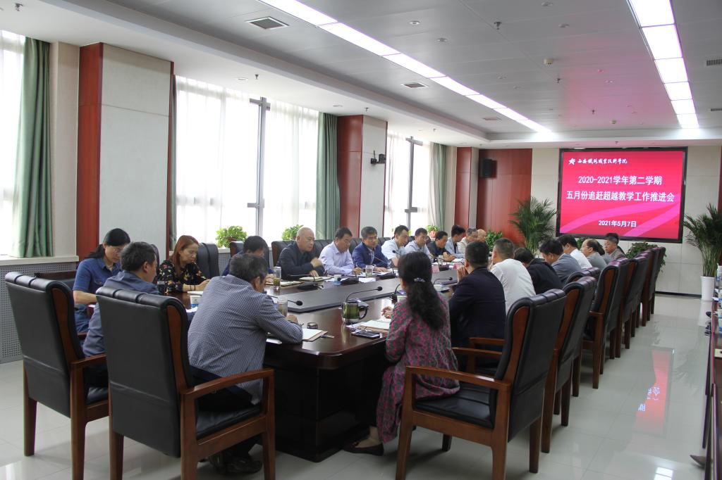 5月7日,学院副院长安学武主持召开5月份追赶超越教学工作推进会。教务处、发展规划处、教科研处、现教中心、图书馆、学生工作部等职能处室以及各二级院部党政负责人、教学副院长及院(部)办主任参会,学院院长赵春平、副书记邓轩出席会议。