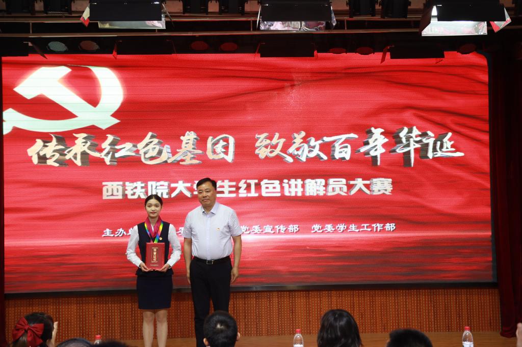 本次比赛评选出一等奖一名、二等奖三名、三等奖六名,这10名选手同时被授予西铁院“金牌讲解员”称号,电子信息学院党总支荣获优秀组织奖。比赛结束后,同学们纷纷表示这次大赛是一堂非常生动的党史教育课,每个英雄人物的革命豪情都感人至深,每段光辉往事的筚路蓝缕都发人深思,更加坚定了在党史学习教育中汲取精神力量、努力拼搏奋进的信心和决心,为实现中华民族伟大复兴贡献青春力量。