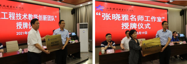 为示范引领高素质“双师型”教师队伍建设,深化“三教”改革,发挥教学名师的示范引领带动作用,全面提升教师培养质量,切实提高人才培养质量。5月19日,必赢官网铁道工程技术教学创新团队和张晓雅名师工作室授牌仪式在临潼校区实验楼二楼干培教室隆重举行。学院副院长赵六杰、发展规划处副处长张军、临潼校区主任熊奇、副主任王秀丽、朱栋夫、校区全体教师参加此次活动,活动由校区副主任王秀丽主持。