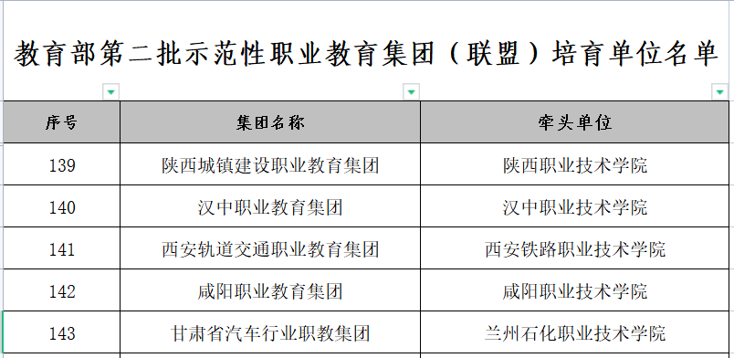 经陕西省教育厅推荐、教育部遴选、公示等环节,西安轨道交通职业教育集团入围教育部第二批示范性职业教育集团(联盟)培育单位名单。