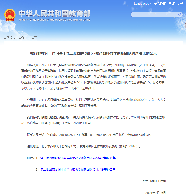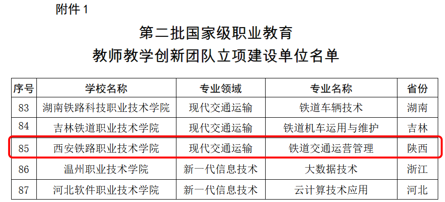 7月26日,教育部教师工作司就“第二批国家级职业教育教师教学创新团队遴选结果”进行公示。根据《教育部关于印发〈全国职业院校教师教学创新团队建设方案〉的通知》(教师函〔2019〕4号)、《教育部教师工作司关于遴选第二批国家级职业教育教师教学创新团队的通知》部署要求,经院校自主申报、省级教育行政部门和全国行业职业教育教学指导委员会审核推荐、项目秘书处形式审查、专家会议评审,必赢官网交通运输学院申报的铁道交通运营管理专业教学团队成功入选第二批国家级职业教育教师教学创新团队立项建设单位。