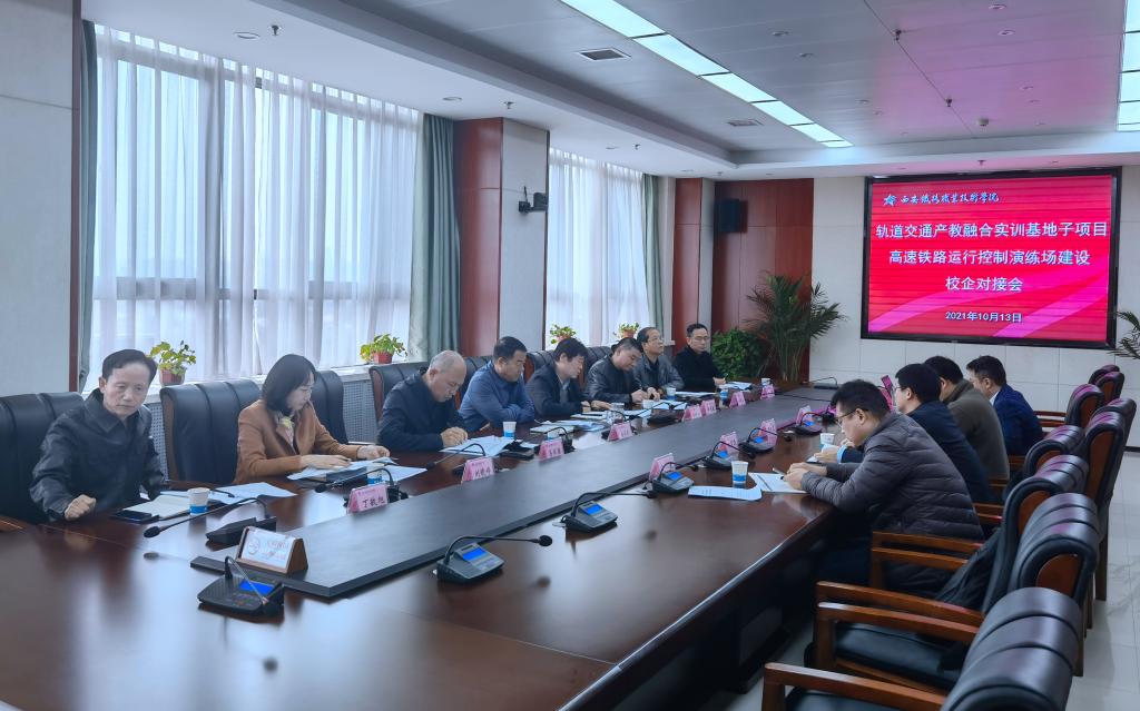 10月13日上午,学院在办公楼五楼第三会议室召开轨道交通产教融合实训基地子项目—高速铁路运行控制演练场建设校企对接会,学院副院长安学武及纪检监察室、计划财务处、后勤基建处、电子信息学院、土木工程学院、北京和利时系统工程有限公司相关人员参会,会议由发展规划处处长马军强主持。