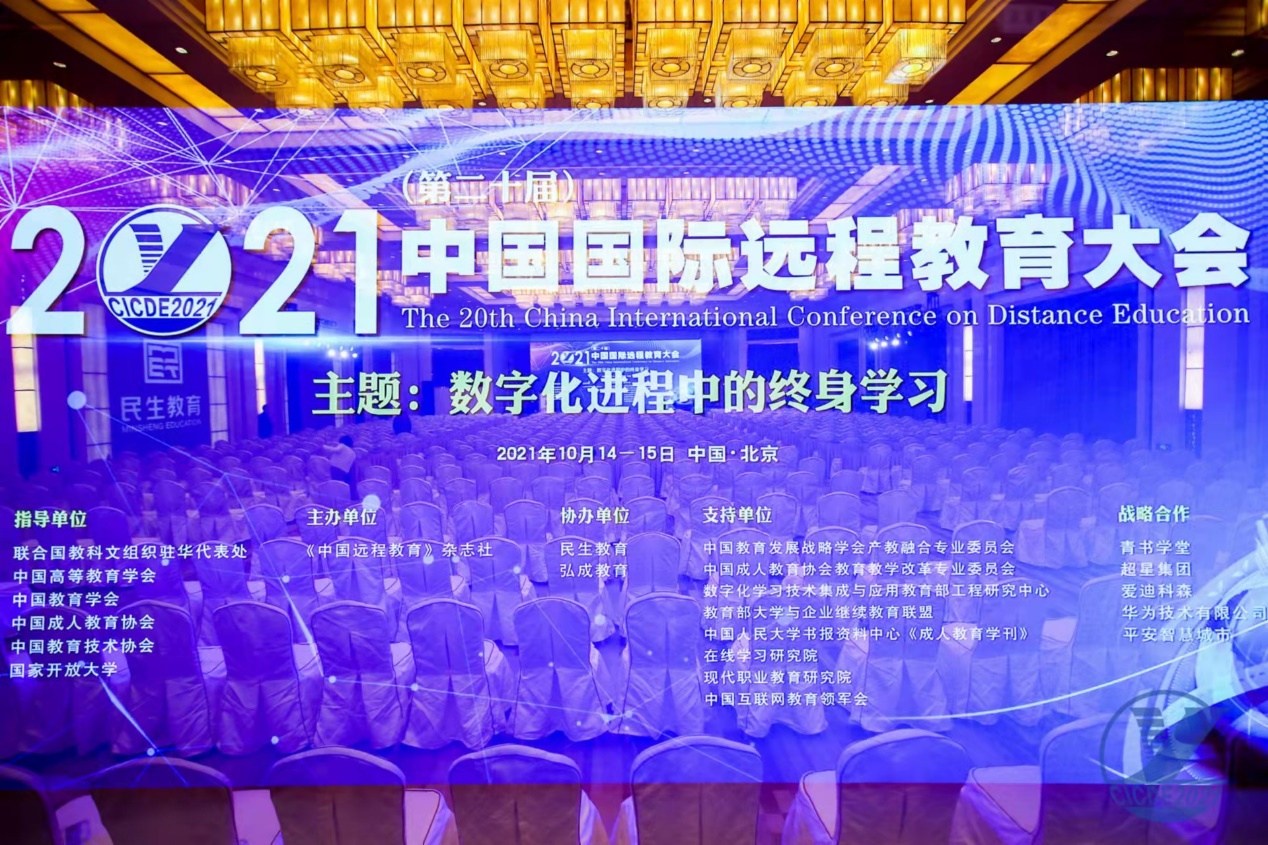 10月13至15日,继续教育学院院长赵铁民代表学院赴北京参加2021(第二十届)中国国际远程教育大会暨2021全国高校现代远程教育优秀校外学习中心颁奖典礼。大会开幕式由国家开放大学副校长鞠传进主持。全国政协委员、国家民族事务委员会原副部长级专职委员、中国高等教育学会副会长管培俊;联合国教科文组织驻华代表处代表、主任夏泽翰(Prof.Shahbaz Khan)致辞。教育部科学技术与信息化司司长、教育部网络安全和信息化领导小组办公室主任雷朝滋;教育部职业教育与成人教育司副司长林宇;国家开放大学党委书记、校长荆德刚等领导学者做主题报告。