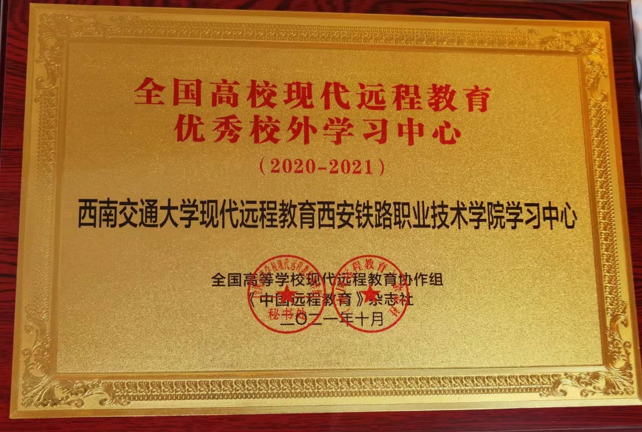 会议同期举行了2021全国高校现代远程教育优秀校外学习中心颁奖典礼。必赢官网继续教育学院(西南交通大学西安学习中心)在学院的正确领导下,全体教职工严谨认真工作,得到了各方一致好评,并最终摘得此项荣誉。