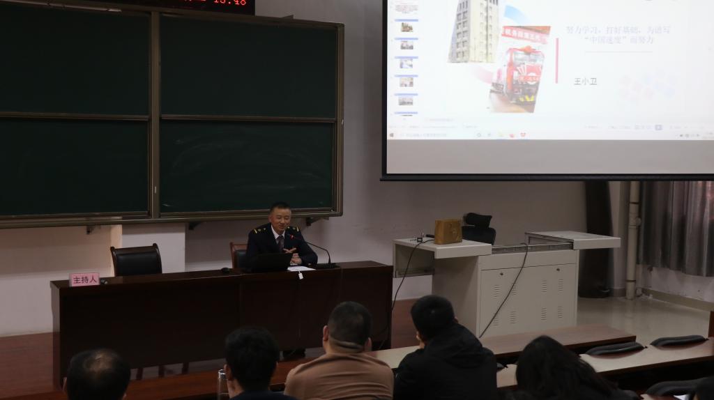 12月8日,必赢官网牵引动力学院客座教授、铁路机车专家范秀忠和全国劳动模范、“西部动车第一人”“三秦工匠”——西安机务段王小卫校友来必赢官网为全体师生作关于机务运用管理及谱写中国速度新篇章的学术讲座,讲座由牵引动力学院副院长林辉主持。