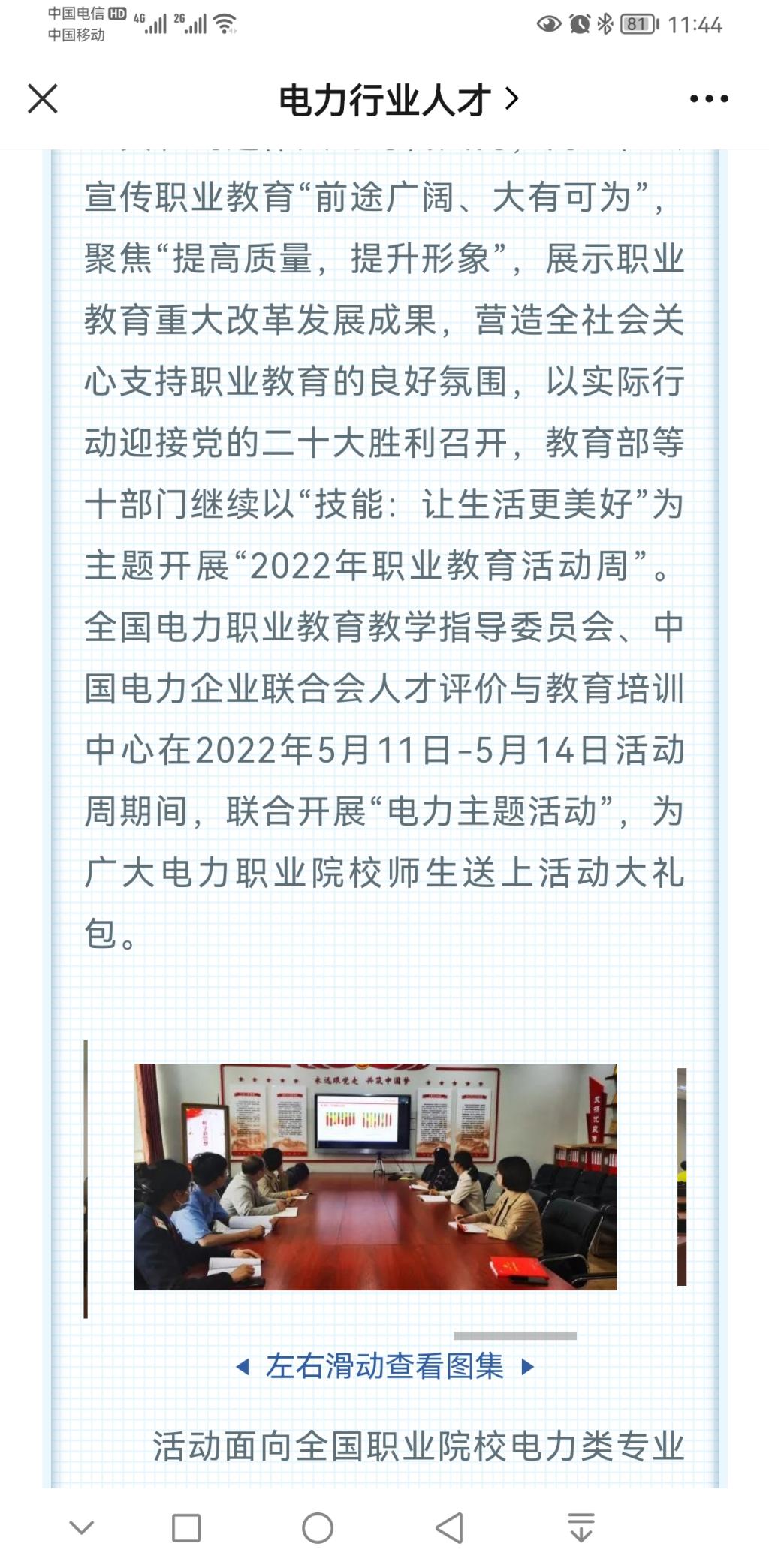 图7 组织师生参加“2022年职业教育活动周”线上活动被中国电力企业联合会、中国电力教育协会相关微信公众号报道