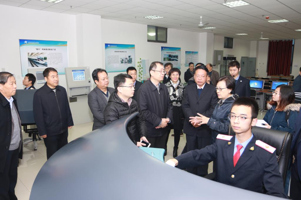 期间,鲁昕同志一行听取了有关同志对牵引动力学院开设的铁道机车、城市轨道交通车辆技术、动车组驾驶和铁道机车车辆制造与维护等专业发展情况和相应实验实训室建设及使用情况汇报,驻足观看了学生进行的HXD3型大功率交流传动电力机车模拟驾驶、CRH380AL高速动车组模拟驾驶、13号下作用式车钩拆卸安装和机车一次乘务作业表演,还仔细参观了CCB-II型电空制动机、地铁列车模拟驾驶装置、城轨车辆牵引与制动系统、城轨车辆电器、城轨车辆仿真系统、电磁悬浮原理等实验实训室。
