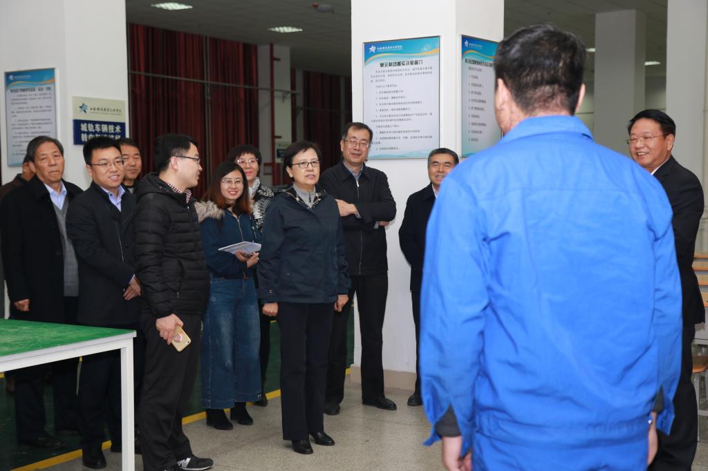 在参观实验实训室过程中,鲁昕同志详细了解了学院的专业建设、师资队伍建设、课程建设、实验实训室建设、国际合作办学、创新创业教育、技能大赛及上级经费支持等方面情况。田和平在汇报中表示,学院始终坚持立足轨道交通行业、服务省市地方经济发展的办学定位,牢牢把握我国高速铁路、城市轨道交通大发展和职业教育高质量发展两大机遇,不断夯实学院办学体制机制优势,以高等职业教育创新发展行动计划(2015-2018年)建设任务(项目)和“双一流”建设为抓手,在做强传统铁路专业外,不断在云计算、大数据、VR仿真、大学生创新创业及磁悬浮列车等方面开展积极探索并取得了令人满意的成效。学院还借助“中俄交通大学校长联盟”“中国—东盟教育联盟”“新丝绸之路职教联盟”和“中英职教联盟”等国际合作办学平台优势,不断深化认识与实践,积极开展职业教育对外交流与合作,先后承接肯尼亚内罗毕运营公司机车运用、机车检修、车辆列检和车辆定检等援教培训项目,服务“一带一路”建设,为推动区域经济高质量发展、服务轨道交通大发展和中国铁路走出去做出积极贡献。