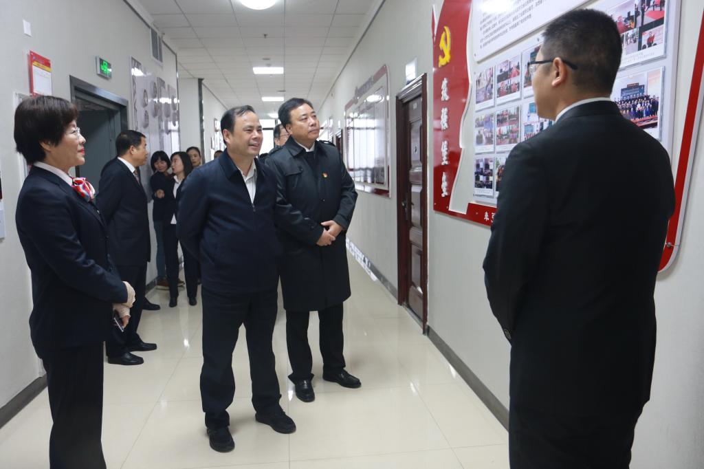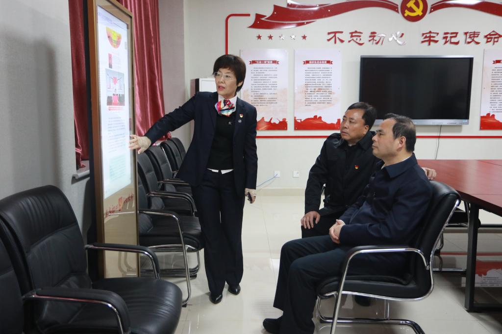 赵敏同志一行首先参观了学院党建文化长廊和师生政治生活馆,详细了解了牵引动力学院党总支“不忘初心、牢记使命”主题教育工作及基层党建工作,体验了“互联网+党建”学习平台,并且给予高度评价。