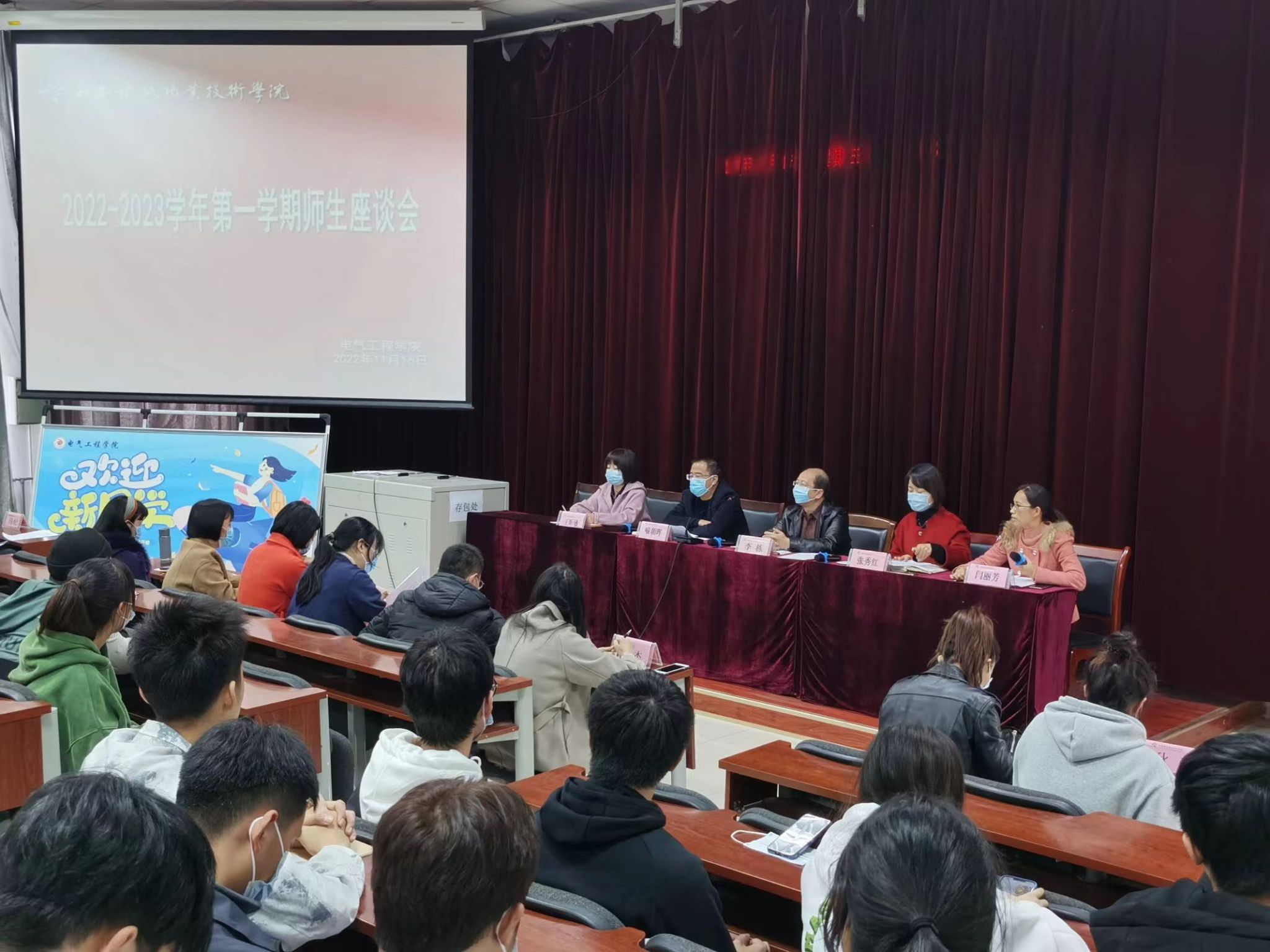 11月16日下午,电气工程学院在101阶梯教室召开期中教学检查学生座谈会。院长李栋、党总支副书记喻朝晖、副院长张秀红、办公室主任董燕、学工办主任马纪、办公室副主任程颖菲及各教研室主任、42个班级的学生代表参会交流,会议邀请教务处、基础部、马克思主义学院教师及干部代表参加。会议由教务员闫丽芳主持。
