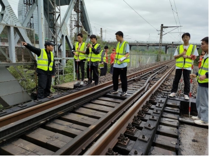 铁科院田康和亿通兆泰刘占奎介绍此次现场技术服务项目开展情况。此次项目参与师生,完成了隶属成都局所属范围内的重庆嘉陵江大桥、内江沱江大桥、涪陵唐家沱中桥、凯里清水江1号大桥等四座桥梁共计831米的桥梁轨枕测量工作。企业方对学生的现场表现充分肯定,希望学院能够购置先进的测量设备,加强学生对工程测量、CAD绘图操作技能及桥梁构造和轨道结构的知识学习。
