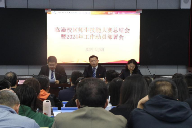 会上,冷鑫宣读了临潼校区2023年度师生技能大赛获奖情况及2024年度师生技能大赛赛项情况。2023年,校区在陕西省职业院校教师教学能力比赛中获一等奖1项、二等奖1项,陕西学校思政课教师“大练兵”获二等奖1项,职业院校学生技能大赛获奖11项、“互联网+”大学生创新创业大赛陕西赛区获铜奖1项,第二届职业技能大赛陕西省选拔赛数字建造项目获优胜奖2项。随后,他介绍了2024年度师生技能大赛9个赛项情况。