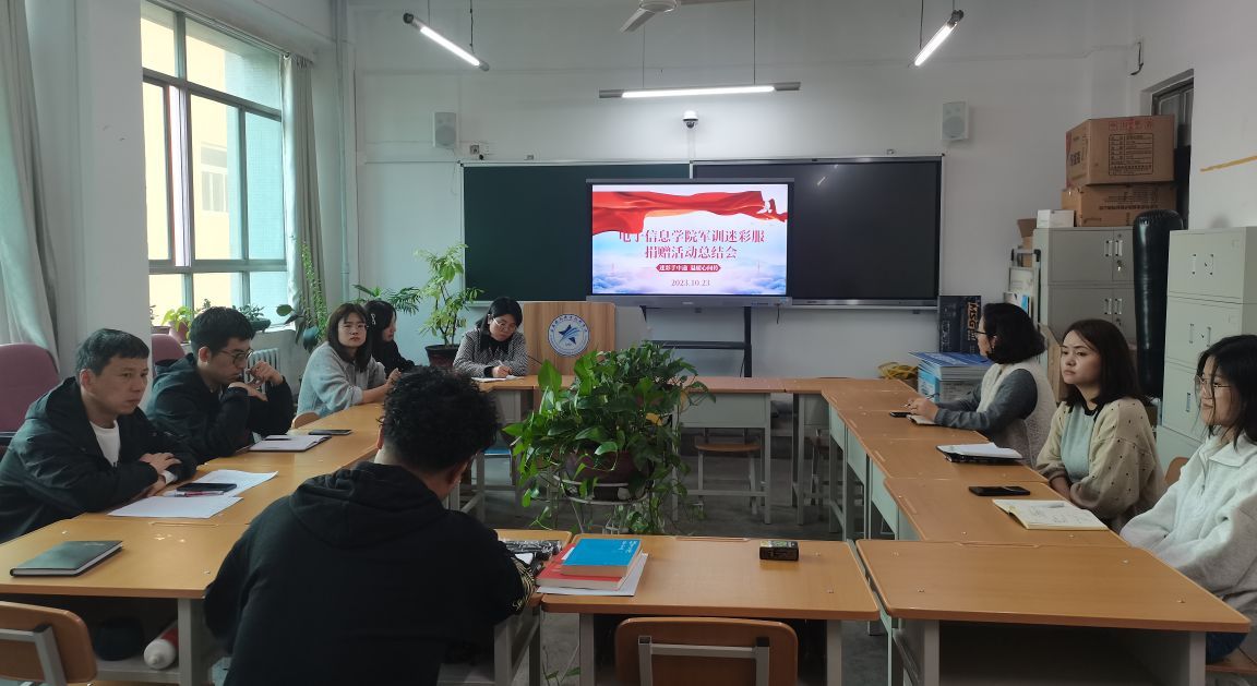 活动结束后,电子信息学院召开了军训服捐赠活动总结会。学工办主任薛明、大一全体辅导员、班主任共同参加。