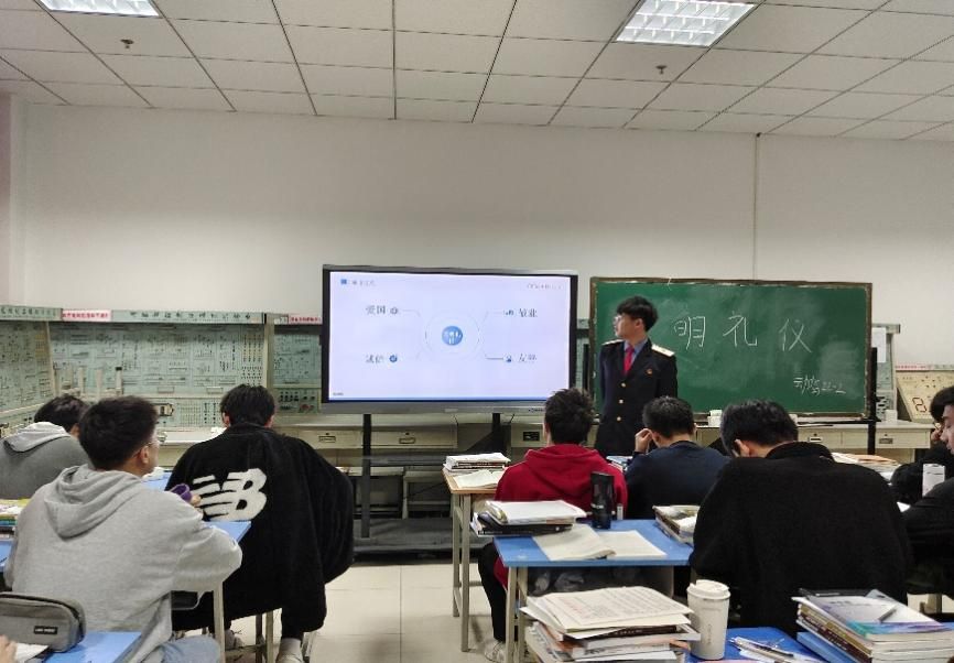 图3 动车组驾驶2202班班长带领同学们学习文明礼仪