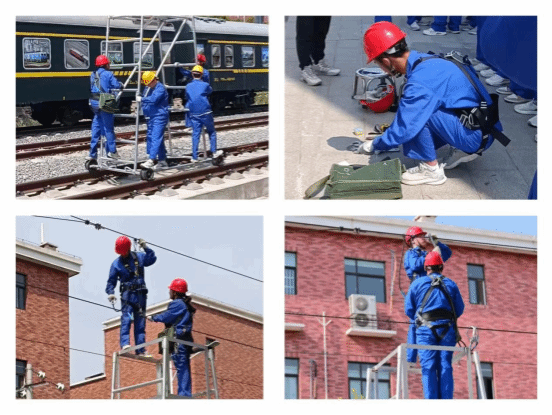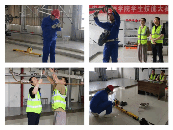 今天的技能竞赛涵盖了多个项目,包括电工技能竞赛、电气制图、柔性接触网拉出值调整、高铁腕臂地面组装、吊弦检查与更换、接触网高空作业等,全面考察了学生们的综合技能水平。