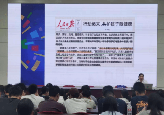 为进一步提升学生视力水平,增强视力保护意识,让学生科学锻炼眼睛,掌握预防近视方法,全面提升学生综合素质能力,5月30日下午,电子信息学院发挥学校近视防控教育主阵地优势,特别邀请了西安爱尔古城眼科医院在自强校区阶梯教室进行“关注普遍眼健康 共建睛彩大健康”公益专题讲座。