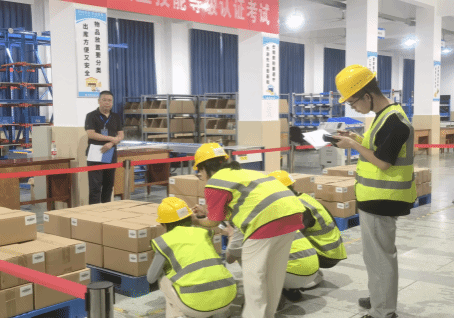 学生检录完毕后,依次按组列队进入实操考场,通过手持终端单独完成入库、理货、搬运、整理、上架、下架、出库等多项物流作业及录单任务,中物联对考试采用全程监控,指派陕西交通职业技术学院赵长东任考评员,对学生完成情况进行全程现场考评。