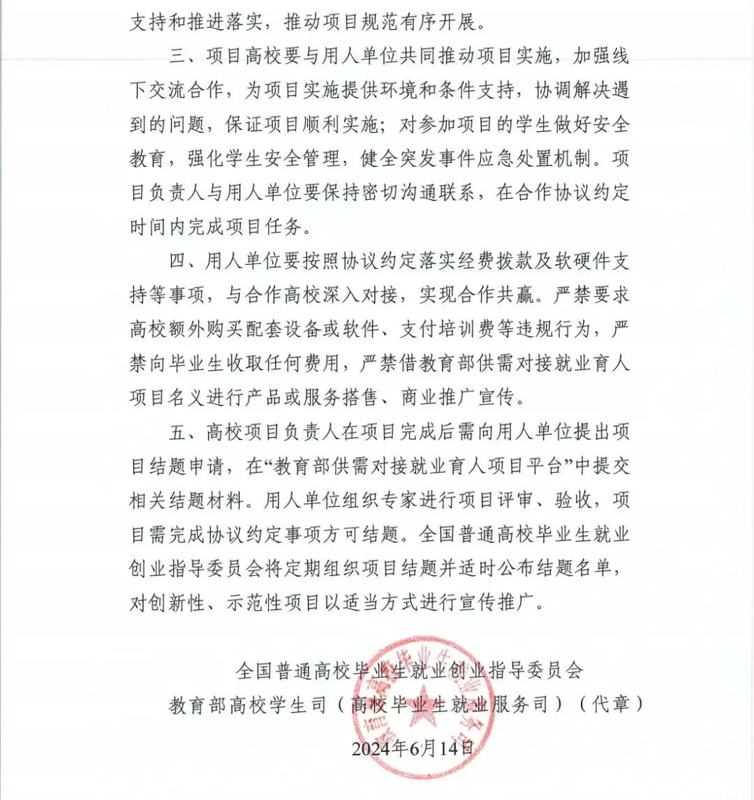 6月14日,全国普通高校毕业生就业创业指导委员会和教育部高校学生司(高校毕业生就业服务司)下发《关于公布教育部第三期供需对接就业育人项目立项名单的通知》(教就业司函〔2024〕23号),临潼校区与陕西创美数码科技有限公司联合申报的“铁道工程技术就业实习基地项目”、与西安三好软件技术股份有限公司联合申报的“校企合作共建1+X建筑施工工艺(土建施工方向)职业技能人才培养模式”2个就业育人项目获批立项。