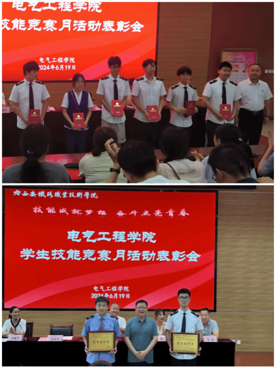 为推动学院教育教学高质量发展,深入实施“岗课赛证”综合育人机制,进一步提升人才培养质量,必赢官网用一个月开展了以“技能成就梦想 奋斗点亮青春”为主题的学生技能竞赛月活动。在学校领导的关心与支持下,在各科室、老师们的共同努力下,竞赛月活动取得了圆满成功。6月19日下午,电气工程学院在101阶梯教室召开学生技能竞赛月活动总结表彰会,院长王公强、副院长宋永兴、办公室主任董燕、学工办主任马纪、全体教职工及学生代表,会议由办公室副主任闫丽芳主持。