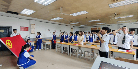 随后,团员们庄严宣誓:“我志愿加入中国共产主义青年团,坚决拥护中国共产党的领导,遵守团的章程,执行团的决议,履行团员义务,严守团的纪律……”誓言铿锵有力,深深烙印在团员们的心中,他们将用自己的实际行动践行入团誓言。
