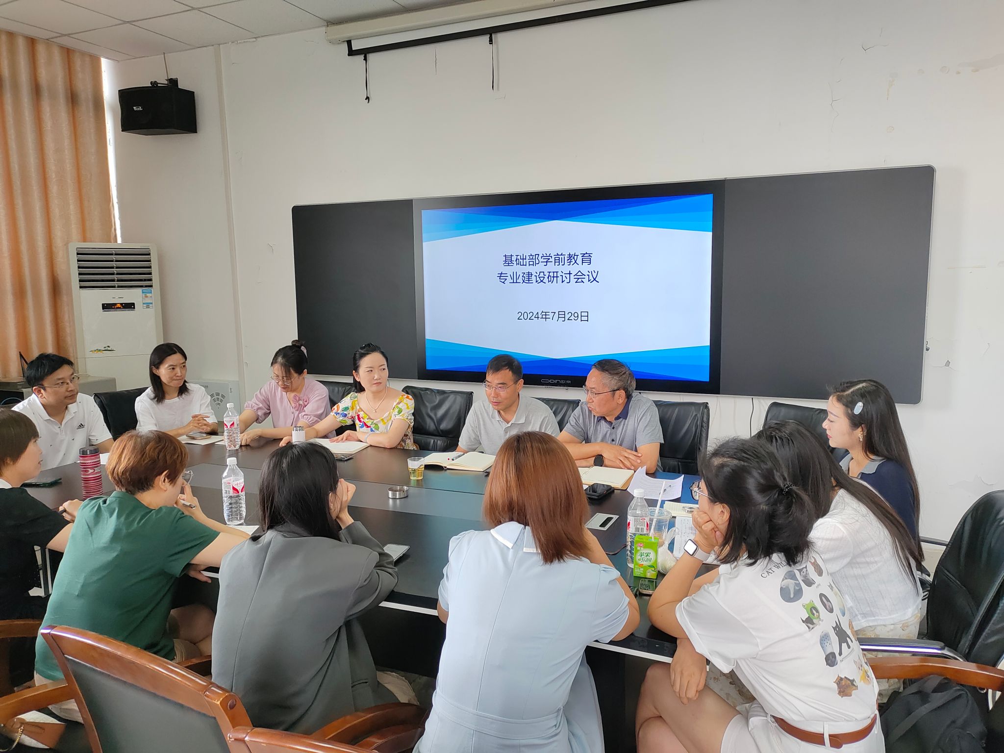 在贯彻“立德树人”根本任务和学院双高建设的大背景下,为进一步加强学前教育专业建设,提高专业人才培养质量,7月29日,基础部召开学前教育专业建设研讨会。此次会议由基础部主任孙明魁主持,学院副院长滕勇,学前教育全体专任教师、辅导员参加了会议。会议中就产教融合、专业数字化建设、岗课赛证融通、学生综合素质养成与德育教育、实训基地建设、生源基地建设等问题开展积极研讨。