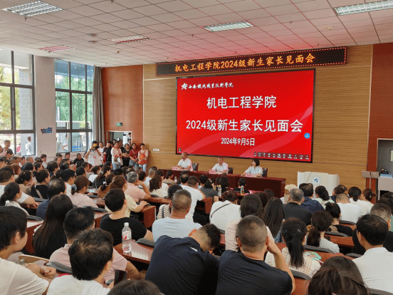 为深入贯彻落实立德树人根本任务,加强学院与新生家长之间的沟通交流,进一步凝聚家校协同育人合力,实现家校携手高效育人的目的,9月5日,机电工程学院在阶梯教室举行2024级新生家长见面会。会议由学院副院长郭峰主持,院长代礼前、党总支书记张秀红、学工办主任谷茂庆以及2024级新生家长参加了此次会议。