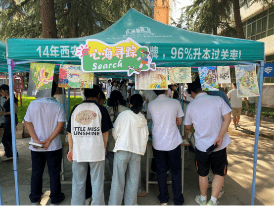 活动伊始,詹天佑广场上便洋溢着青春与活力。在“德美润心”作品展示区,一幅幅书法、绘画、手抄报及手工艺品错落陈列,既有遒劲有力的书法佳作,也有色彩斑斓的创意画作,更有精巧细腻的手工饰品,吸引师生驻足欣赏。是艺术与心灵的碰撞,传递着积极向上的价值观,为校园增添了一抹人文之美。同时,新增设的“文韵润心”征文展示区域也备受瞩目。数十篇优秀征文整齐张贴,内容或分享心理成长故事,或阐述对心理健康的独到见解,字里行间流露着学生们对心灵世界的探索与感悟。纸张虽薄,却承载着青春的思考与成长的痕迹。