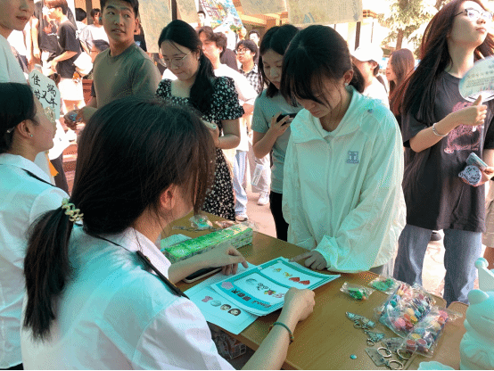 心灵创意坊则成为情感表达的“心灵港湾”。在“墨语签”区域,同学们提笔书写励志箴言,将书签悬挂于展架共享温暖;“扇绘心”活动中,素色团扇被绘上笑脸、爱心等图案,成为独特的艺术纪念品;“串起心连心”手链制作区,同学们专注编织,用色彩缤纷的珠子串联起对生活的热爱;涂色娃娃手绘区,通过颜色的搭配与手指间的勾勒,不仅展现了艺术之美,更释放了心灵压力。活动尾声,师生们纷纷在“5·25心理健康日”主题横幅上签名,共同承诺关注心理健康,营造积极向上的校园氛围。